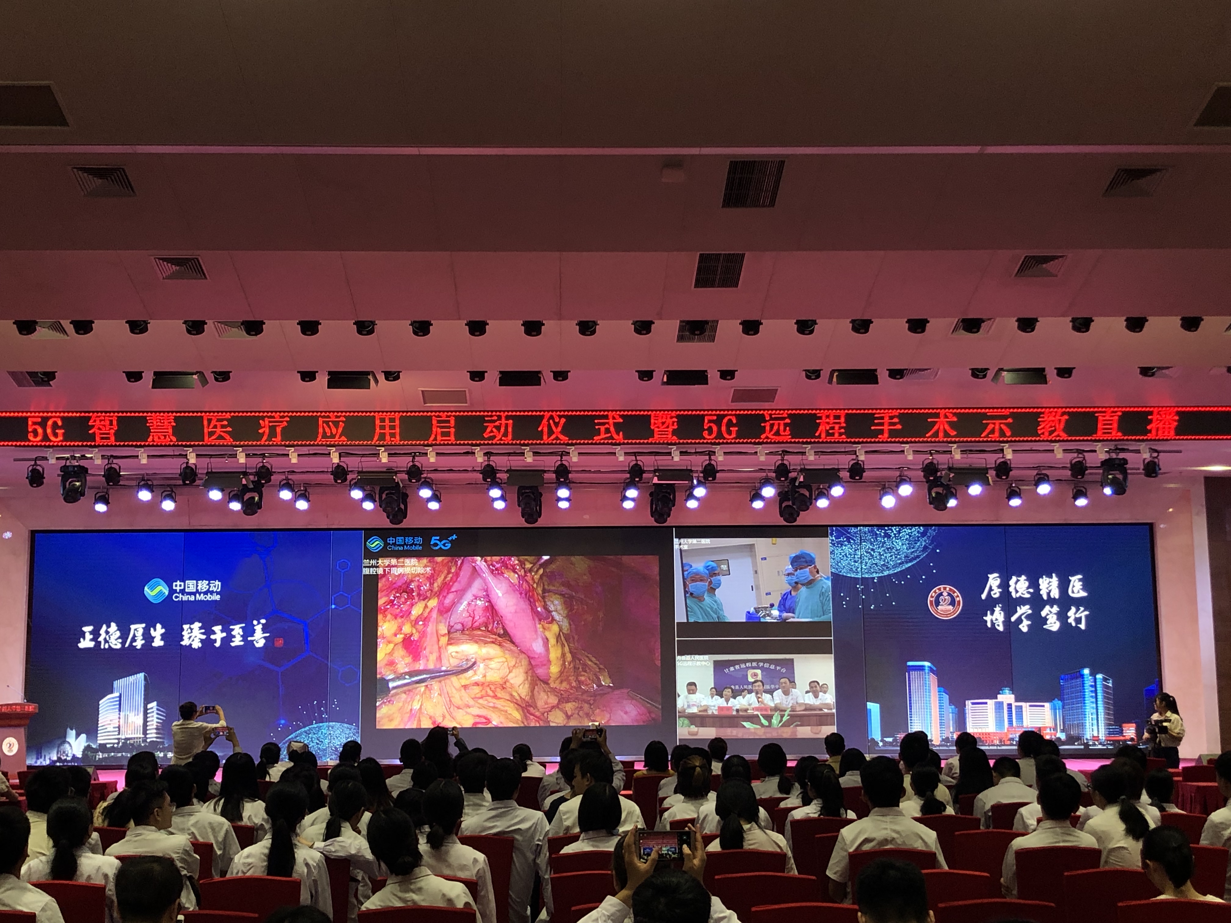 于2019年8月9日上午10时,兰州大学第二医院手术室,该医院院长王琛主刀的一台腹腔镜下胃癌根除手术正式开始,手术室外的高清电子屏以及远在舟曲县医院的直播显示屏上,本次会议正是由广州高通影像技术有限公司提供专业手术网络直播同步进行。这次的手术标志着5G智慧医疗应用在甘肃省正式启动。