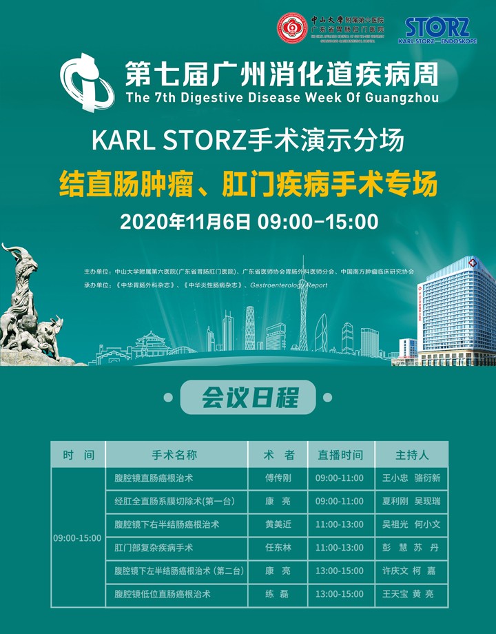 网络直播|第七届广州消化道疾病周-KARL STORZ手术演示分场 结直肠肿瘤、肛门疾病手术专场